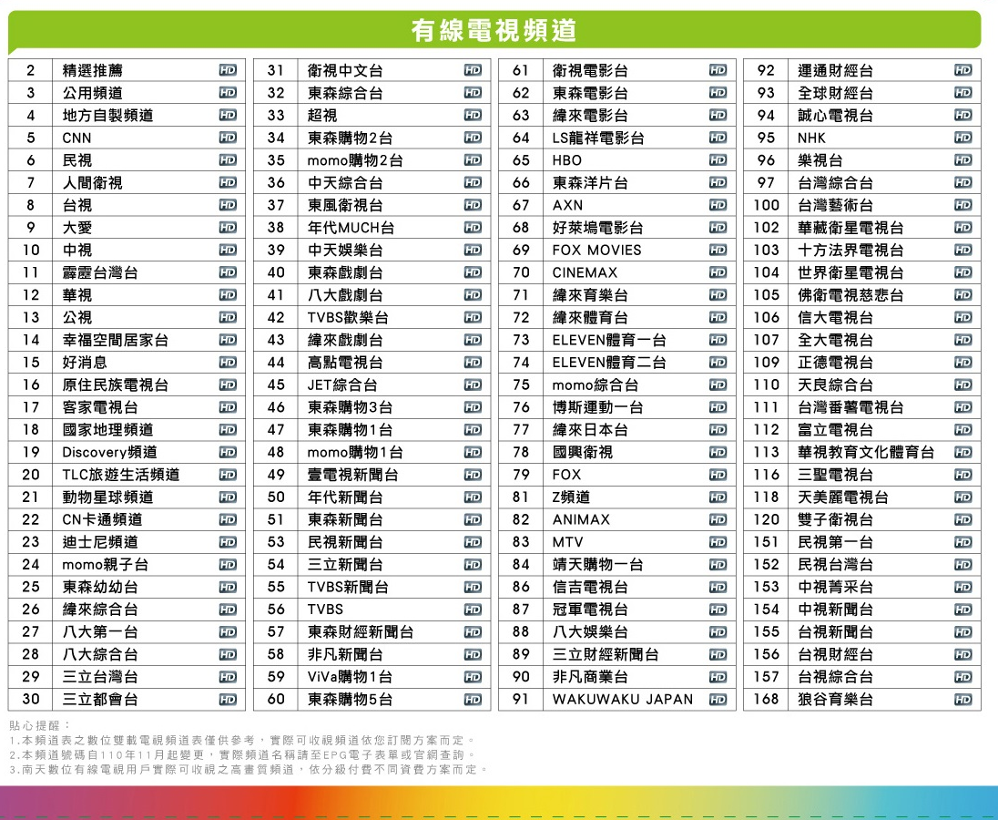 新頻道數位有線電視 數位有線電視頻道表,請至官網【頻道節目表】查詢。